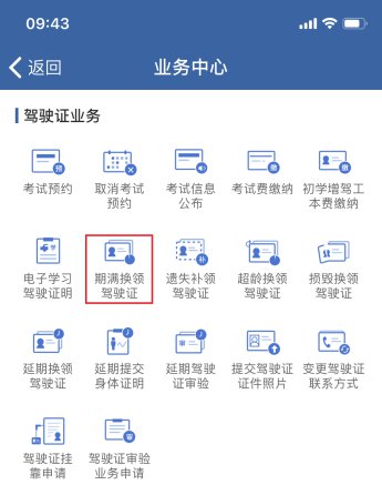 1.点击“期满换领驾驶证”。