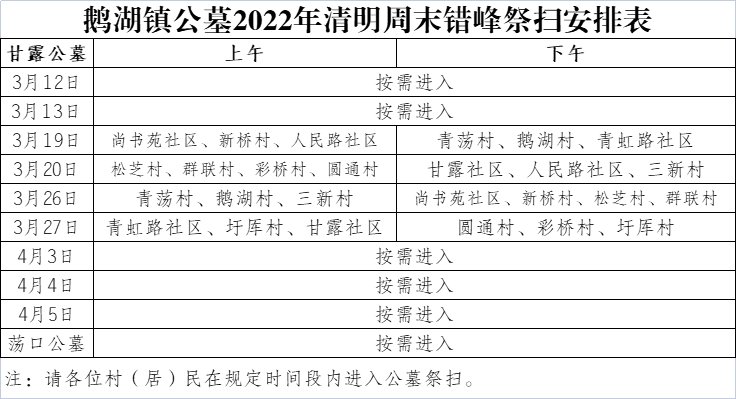 2022无锡鹅湖镇清明扫墓活动分流错时安排