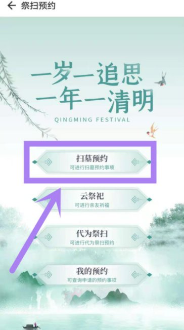 1.打开灵锡APP首页,搜索祭扫进入-【祭扫预约】专区,点击【扫墓预约】