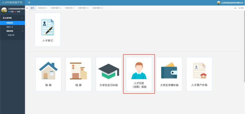 点击首页【人才引进(培育)奖励】图标,进入人才引进(培育)奖励申报页面