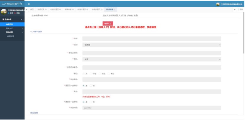 点击【选择人才】,选择人才信息,自动引入个人基本信息。