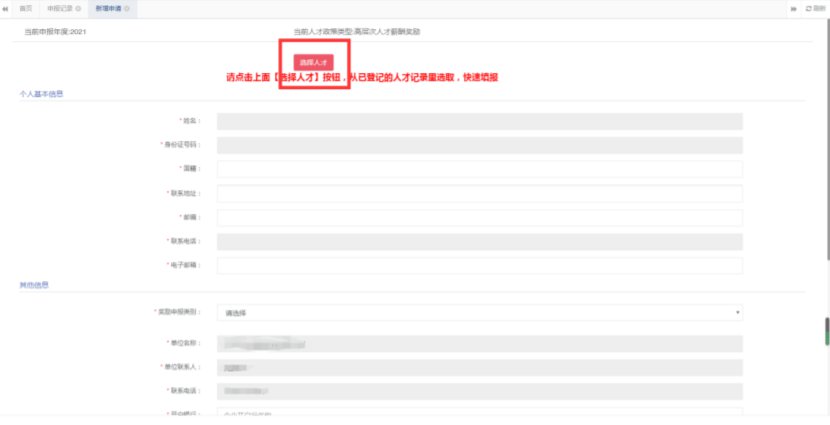 点击首页【高层次人才薪酬奖励】图标,进入高层次人才薪酬奖励页面