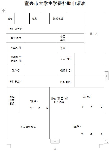 1、《宜兴市大学生学费补助申请表》;