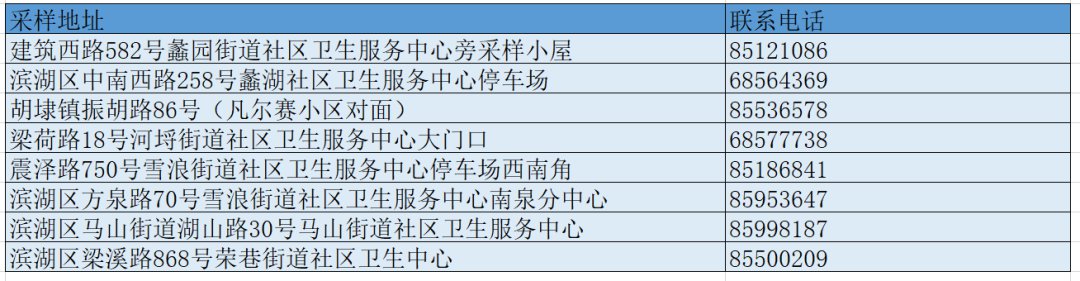 三、无锡市外省(不含涉疫地区)来锡返锡人员免费核酸采样点(拨打固定电话请加无锡区号0510)