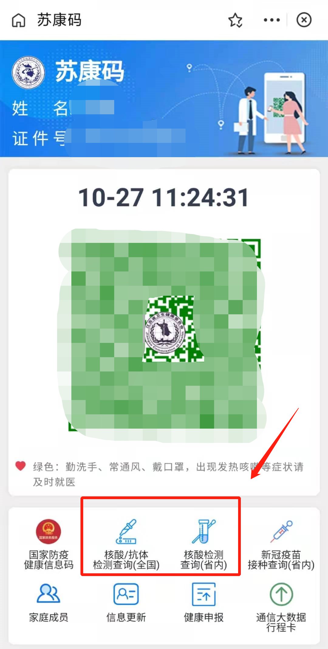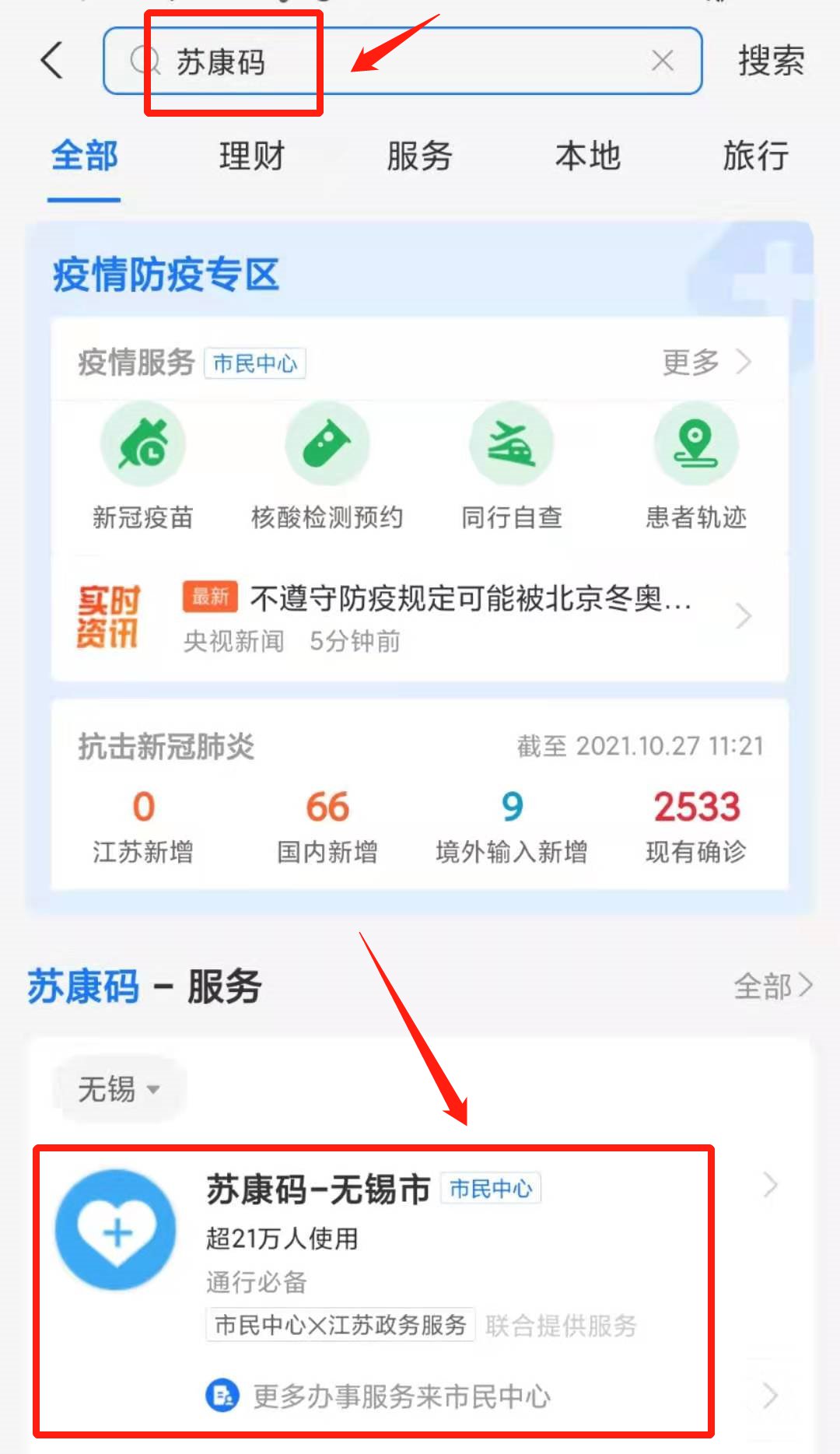 打开支付宝,搜索苏康码,点击页面右下角的核酸检测查询,就能看到结果啦,顺便还能查一查自己的新冠疫苗接种记录。