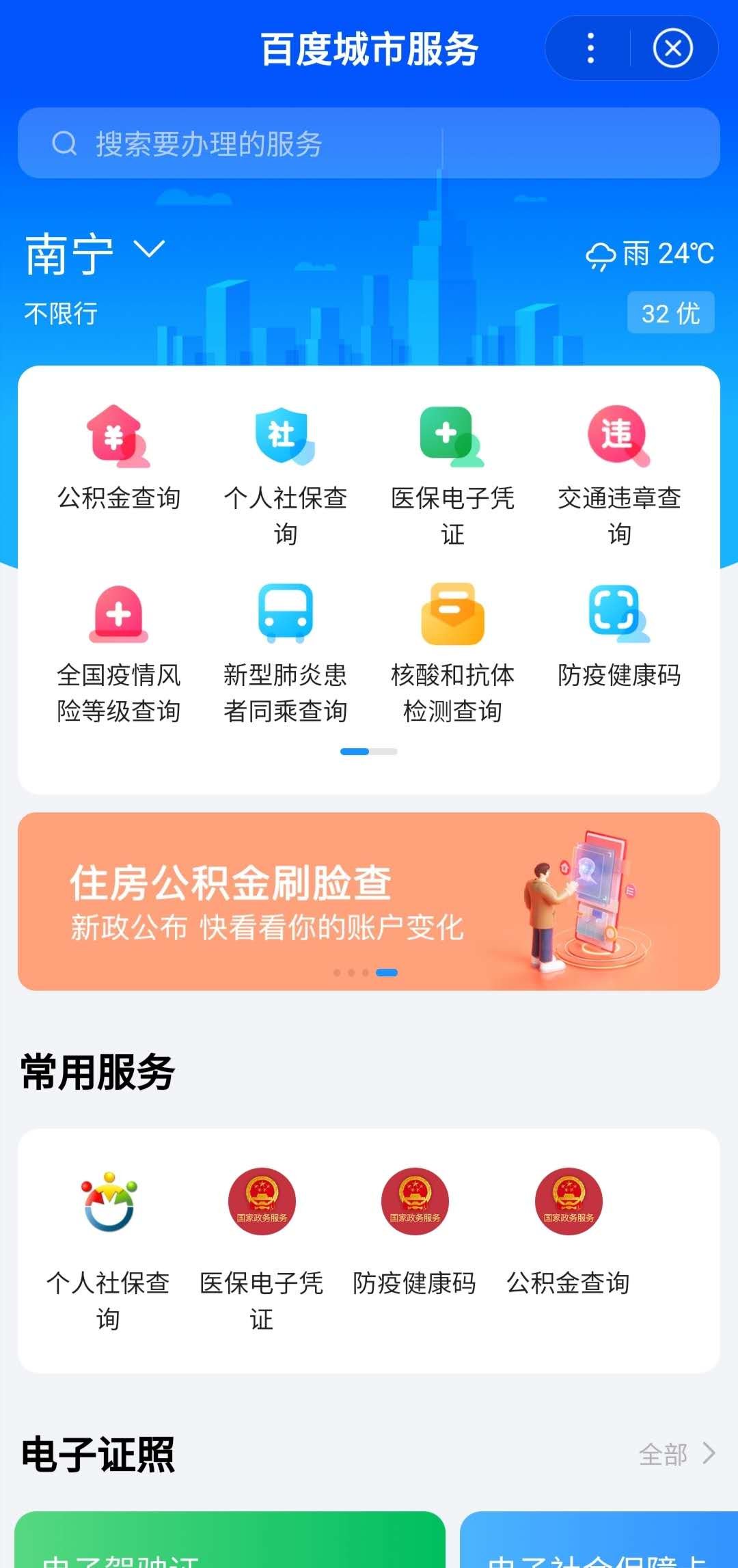 第一步:百度搜索『程序服务』,进入百度城市服务小程序,进入后定位到『南宁』