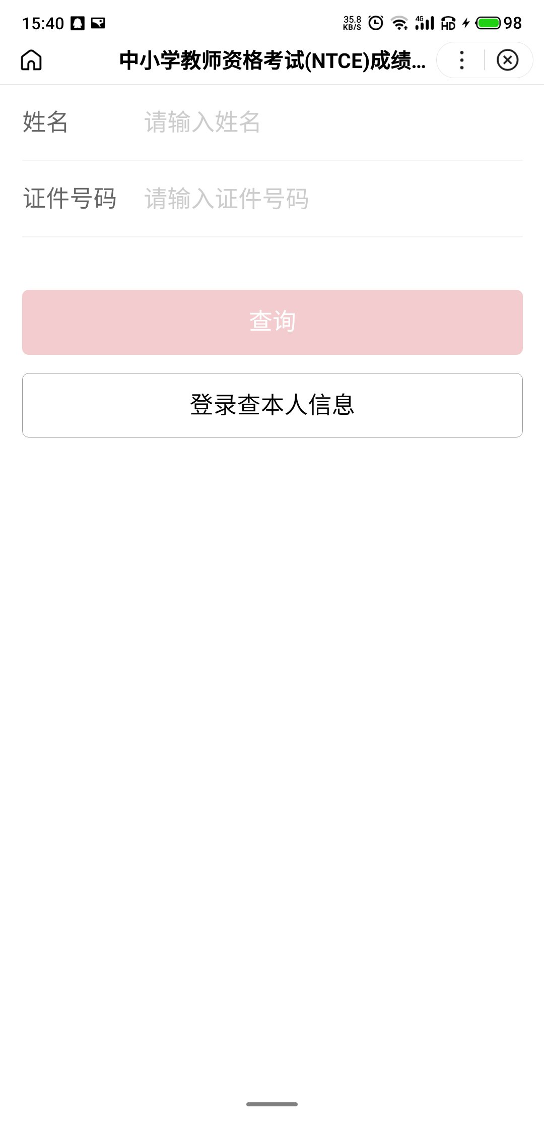 第二步:进入成绩查询入口,输入姓名、证件号码、验证码等信息,然后就可以查询到教师资格证考试成绩