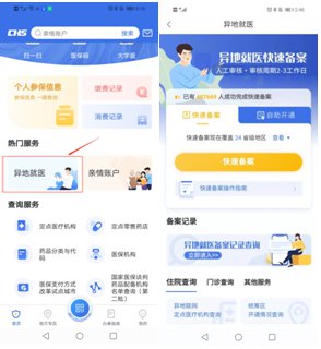 1、打开国家医保服务平台APP,依次点击首页【异地就医备案】-【快速备案】按钮,进入异地就医快速备案页面。