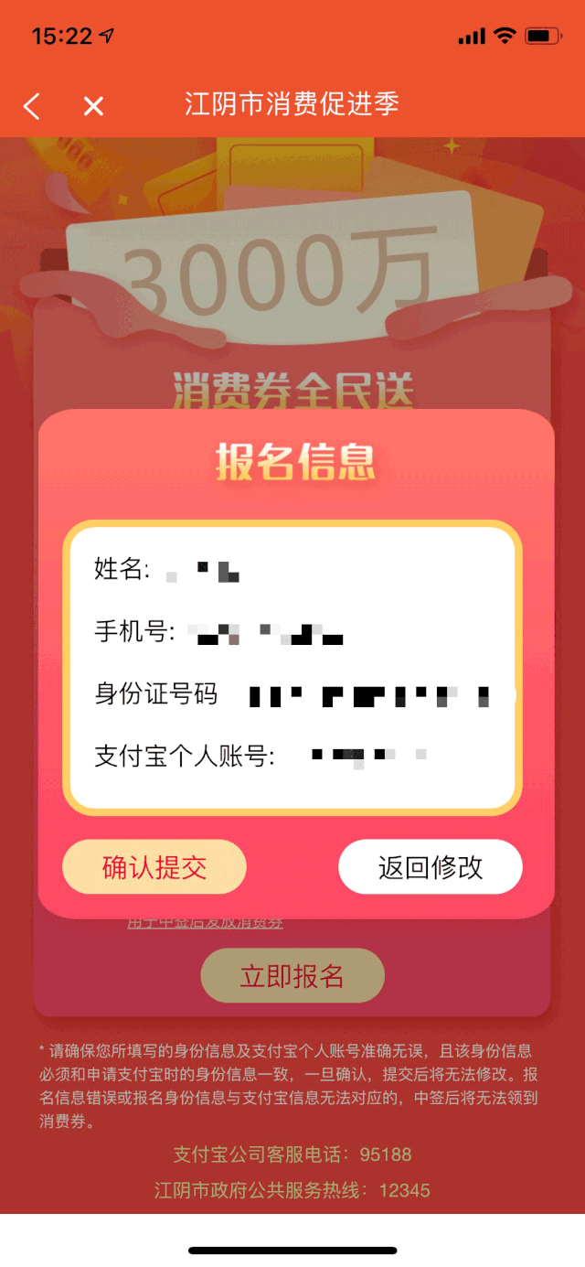 报名信息错误或报名身份信息与支付宝信息无法对应的,中签后将无法领到消费券。