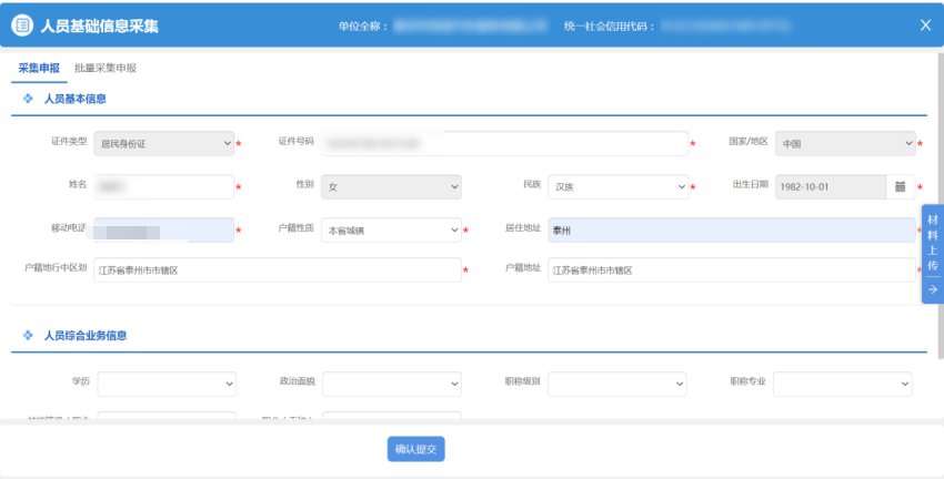 4.点击【确认提交】,完成人员信息采集。