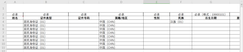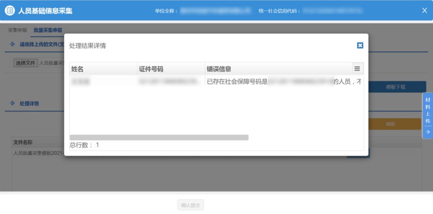 6.在模板上维护需要导入的人员信息,点击【选择文件】按钮,选择需上传的模板,点击确认提交,完成业务办理。