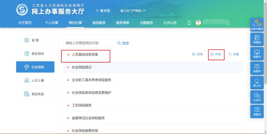 2.点击《人员基础信息采集》对应的【申报】按钮。
