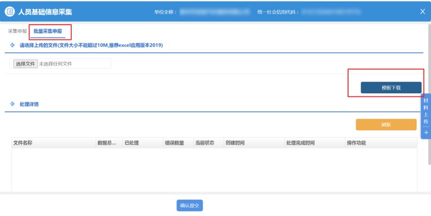 5.点击tab页“批量采集申报”,点击【模板下载】,下载模板。