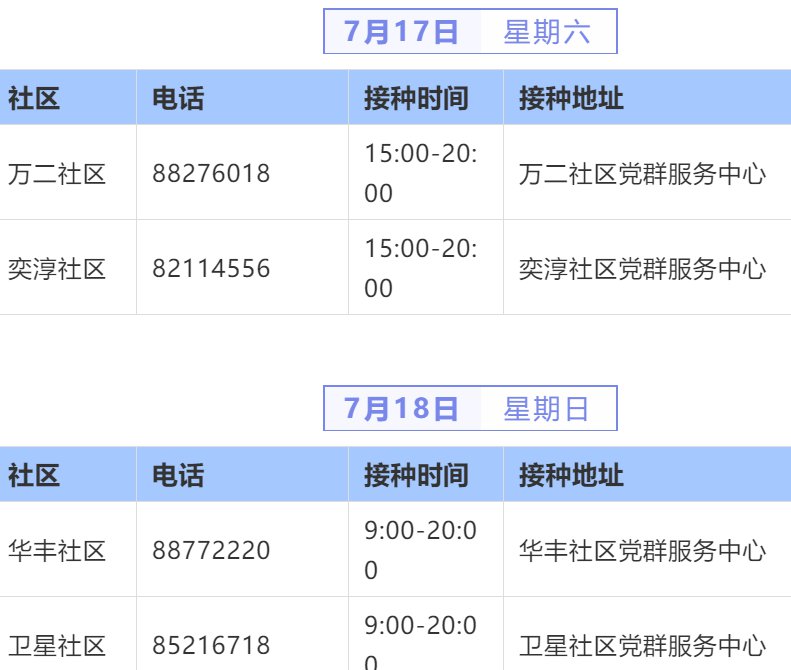 7月17日后,新安街道夜间新冠疫苗接种专场安排,具体开始时间将另行通知