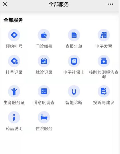 预约挂号、门诊缴费、报告查询、电子发票、核酸检测报告查询、电子社保卡……(详情点图)