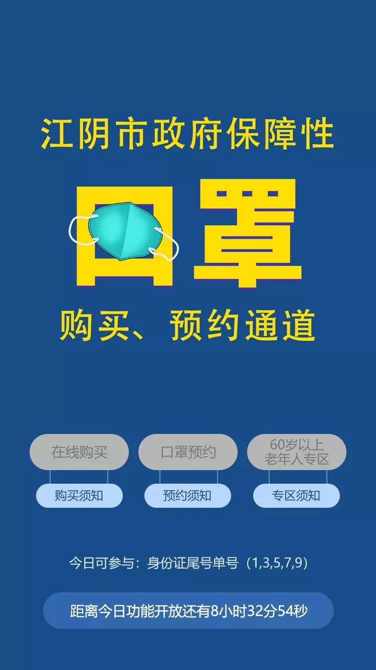 点击进入首页,进入【江阴市政府保障性口罩购买、预约通道】