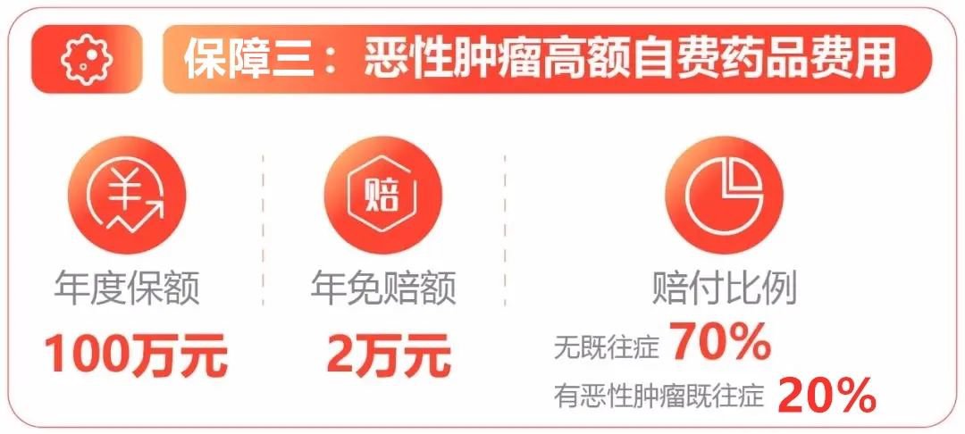 三、恶性肿瘤高额自费药品费用保险金 | 100万 |