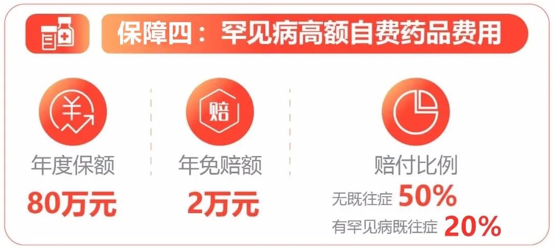 四、罕见病高额自费药品费用保险金 | 80万 |