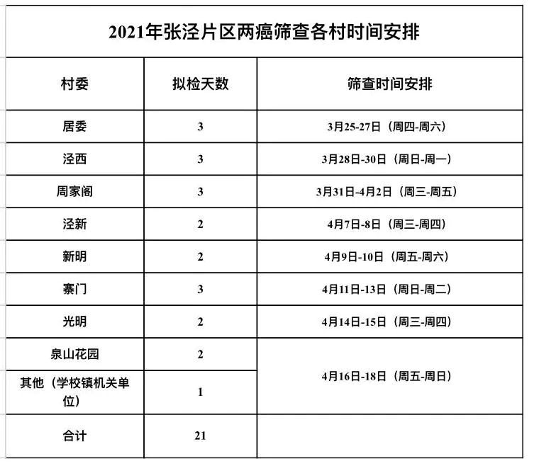 泾新村体检时间:4月7日至4月8日。每日上午07:30-11:30,下午13:30-16:30。