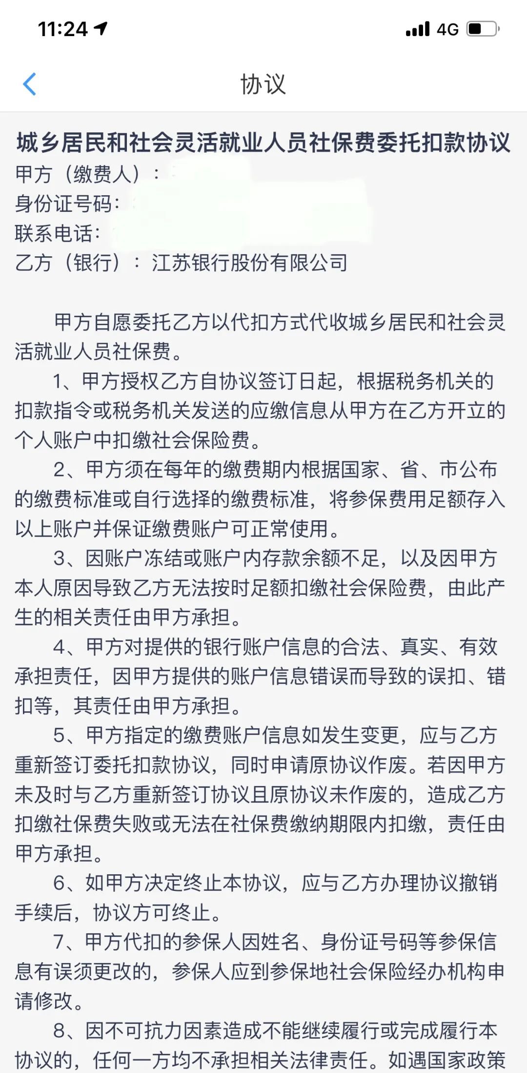 4.阅读并勾选“江苏银行城乡居民和社会灵活就业人员社保费委托扣款协议”选项,点击【确定】,系统将要求验证您的银行卡交易密码。