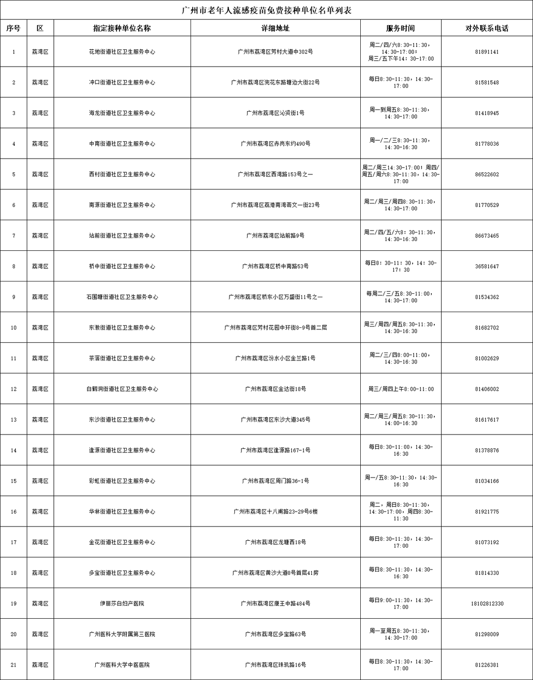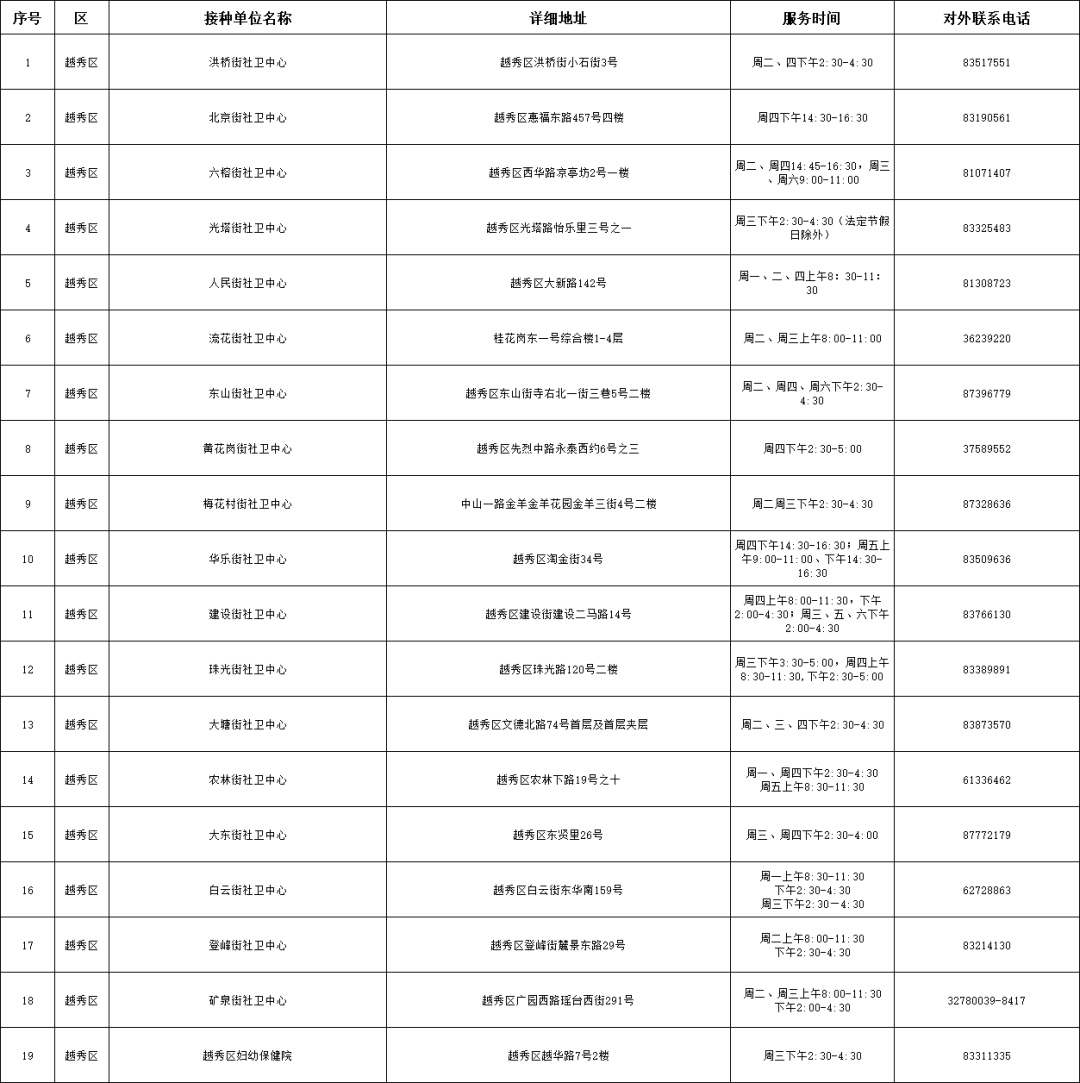 各单位接种时间详见下表(点击图片可看大图)。