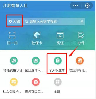 可以从“江苏智慧人社”app中查询:切换地点为“无锡”,选择栏目中的“个人权益单”即可