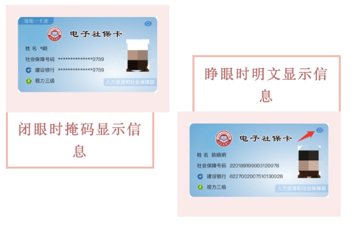 小贴士1:电子社保卡卡面右上角的小眼睛有什么用途?