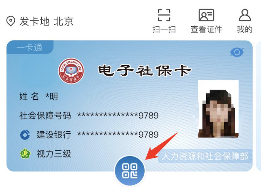 打开你的电子社保卡,箭头指示的这个小小的按键就是二维码展码功能↓