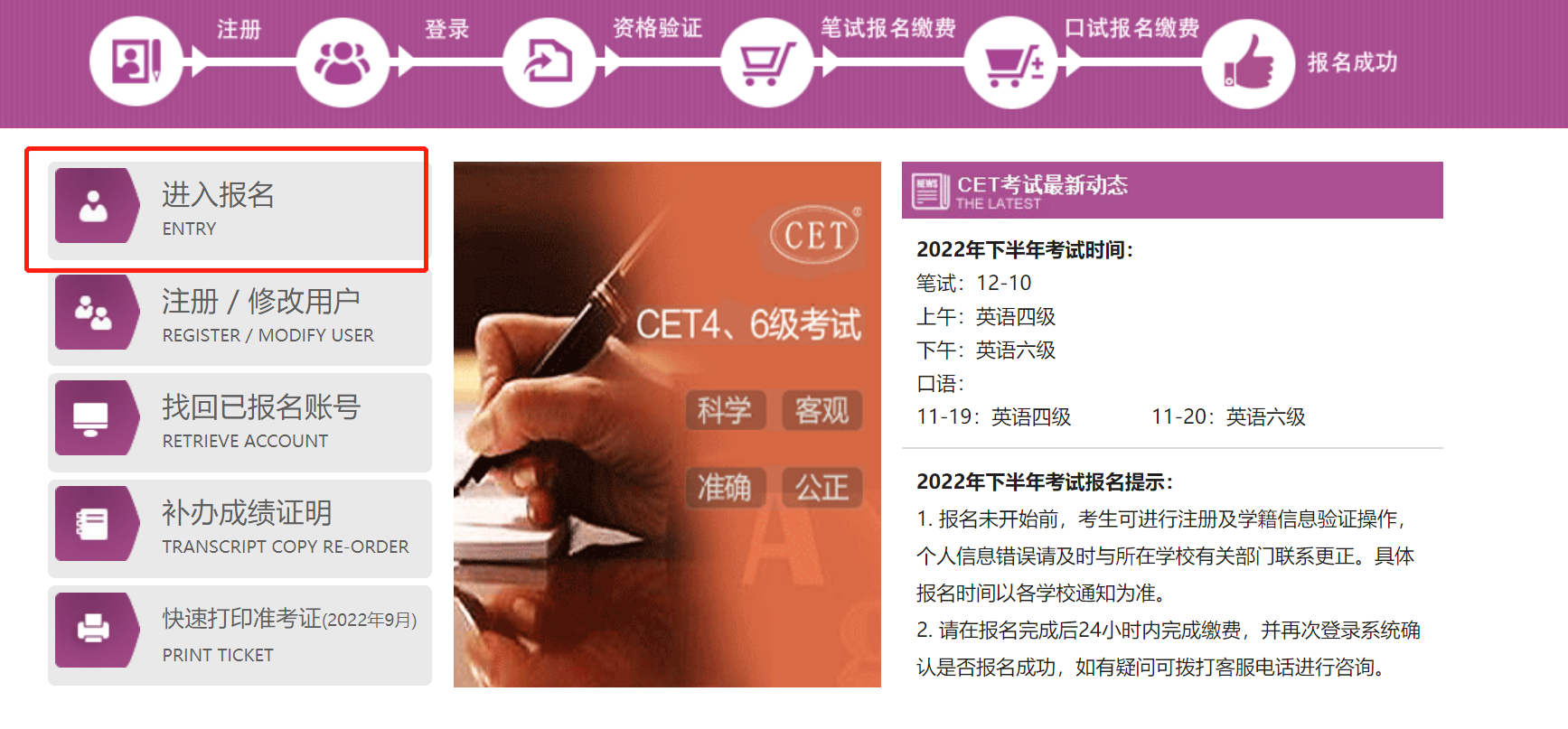 报名平台:全国大学英语四、六级考试网站