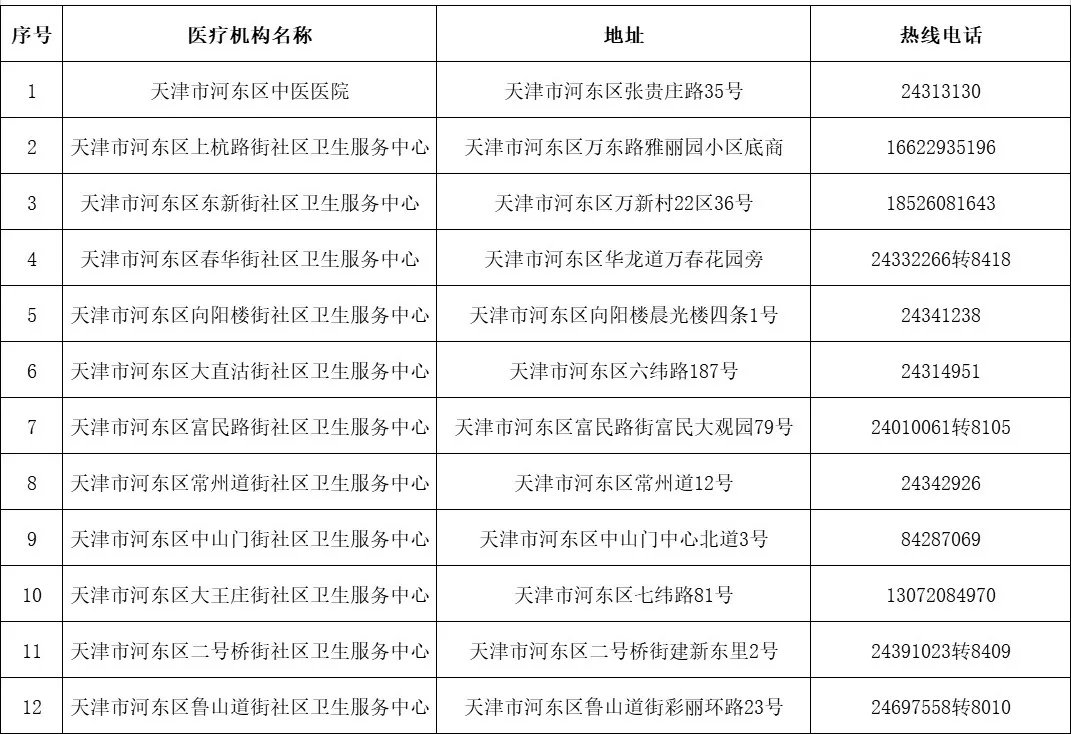 “清感饮”(系列)制剂现已在天津市300余家机构推广使用,以下是天津市河东区推广使用机构地址和咨询预约热线,市民可以根据实际就近咨询取药。(建议广大居民预约取药)