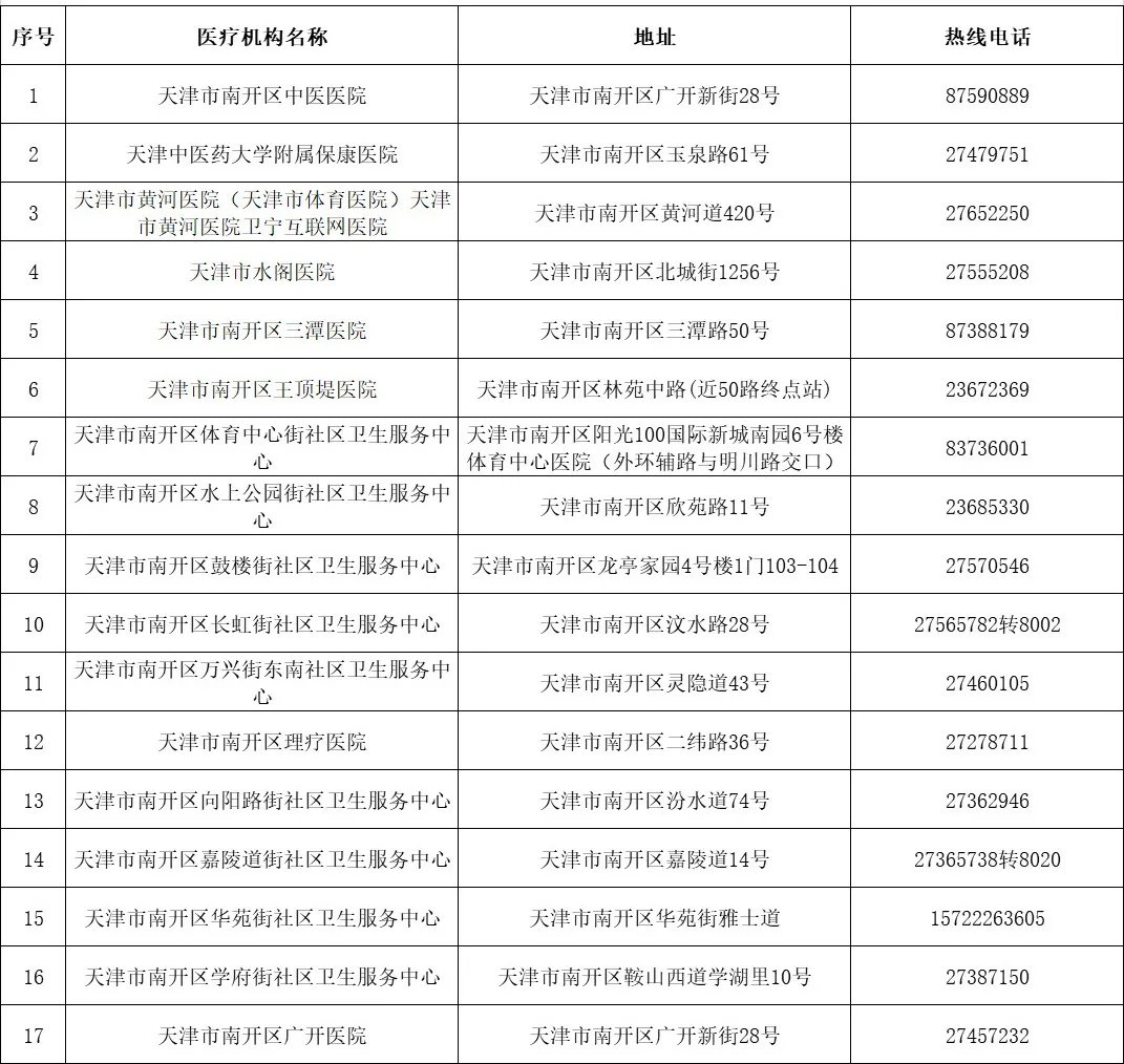 “清感饮”(系列)制剂现已在天津市300余家机构推广使用,以下是天津市南开区推广使用机构地址和咨询预约热线,市民可以根据实际就近咨询取药,建议广大居民预约取药。