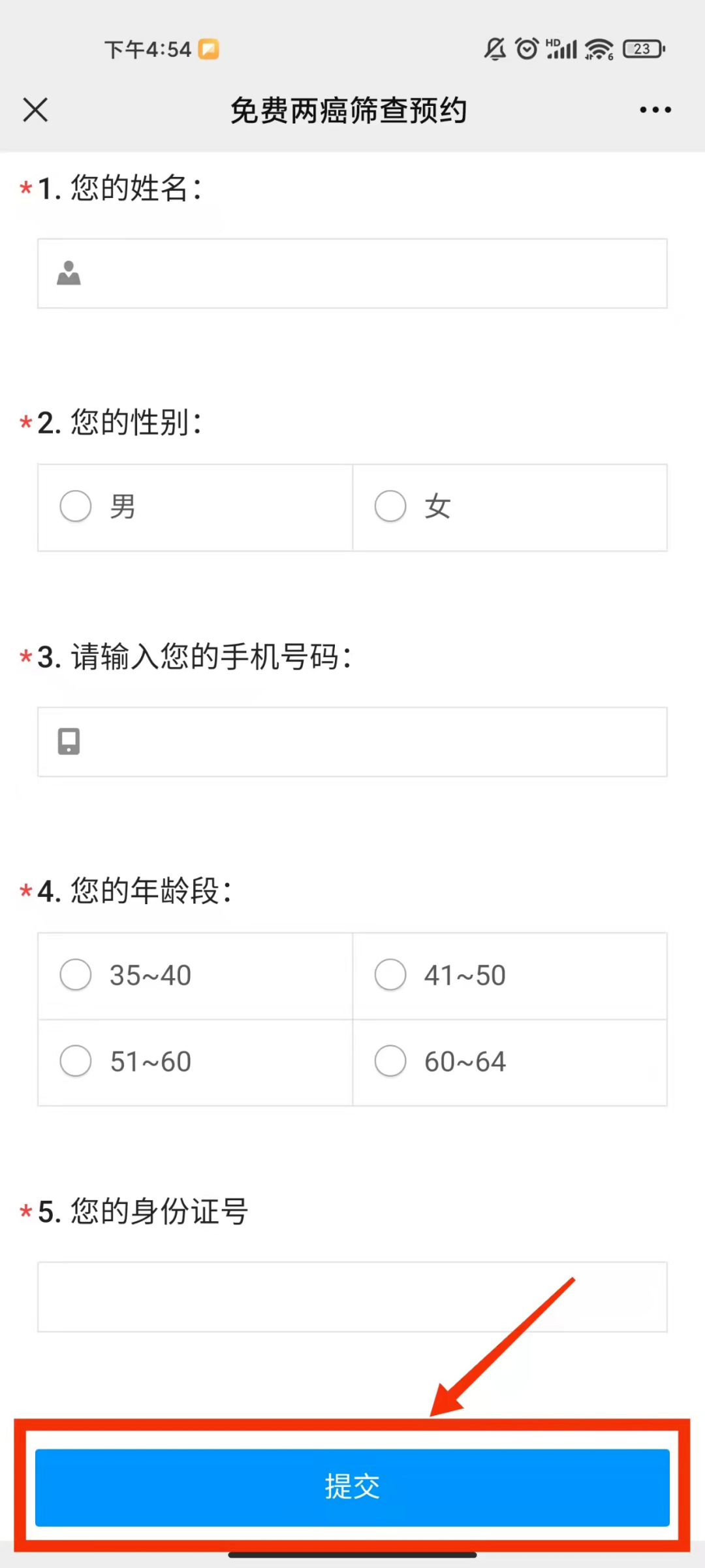 3、点击免费两癌筛查预约;
