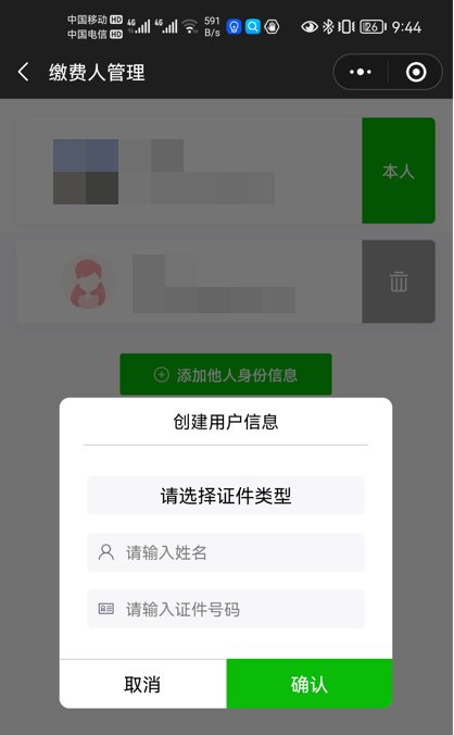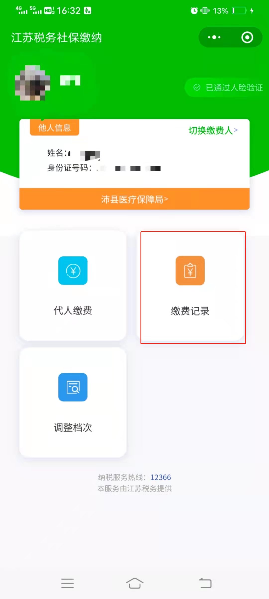 B、选择代他人缴费,点击切换缴费人—添加他人身份信息,输入需代缴的人员信息后,点击代人缴费