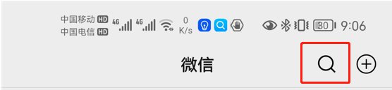 方法1·在微信主界面中,点击右上方“搜索”图标;
