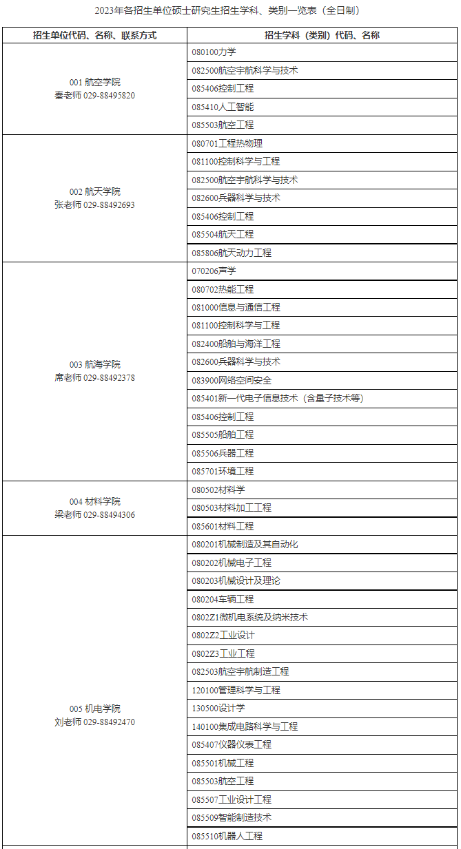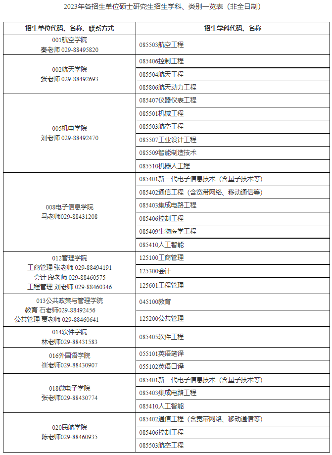 西北工业大学2023年硕士研究生招生简章