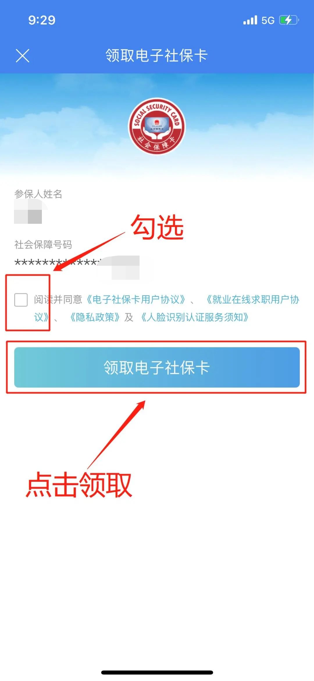 第一次打开电子社保卡,需按照操作提示领取并完成相关验证。