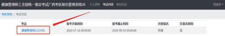 1.进入首页后,进入“考试列表”,选择“健康管理师(2020年)”。