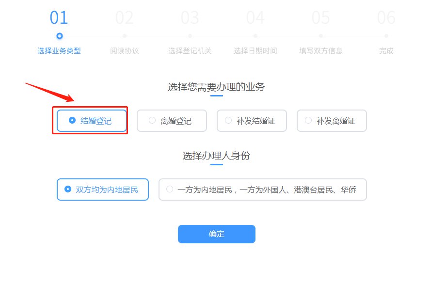 第四步:选择预约日期和时间,点击确定,填写男女双方信息,上传电子版证件,即可完成预约
