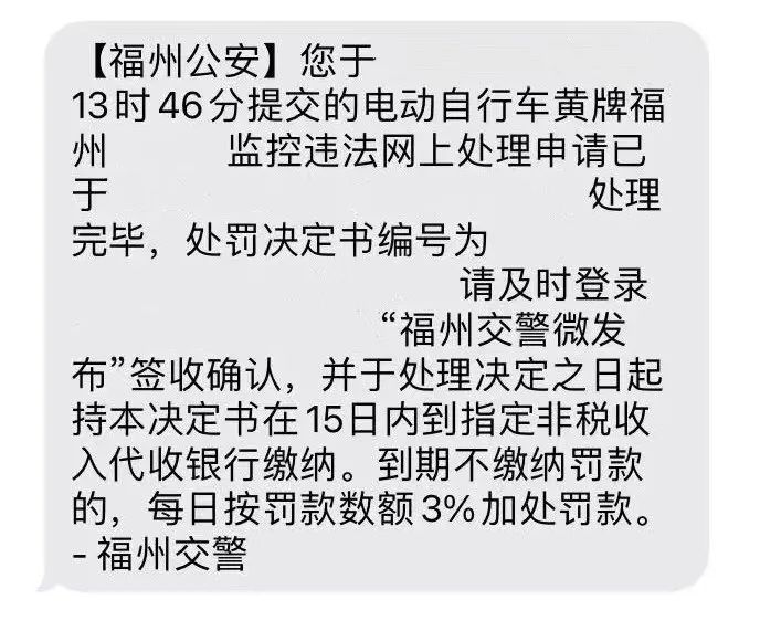 收到短信后请及时登录“福州交警微发布”签收确认。