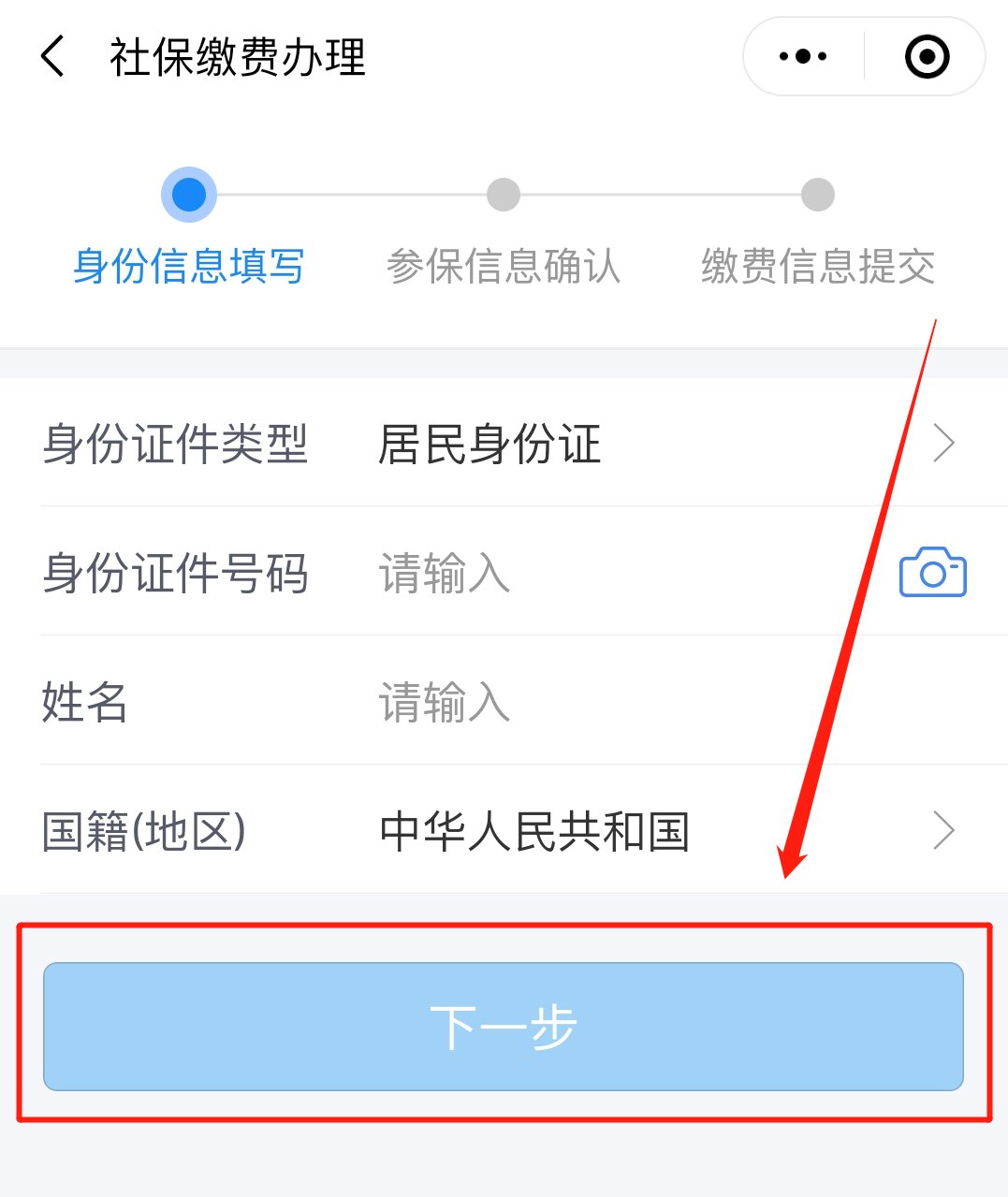 4.绑定成功后,在信息填写界面如实填写个人身份信息并点击“下一步”;