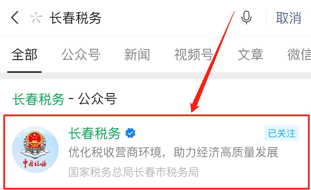 1、使用微信搜一搜搜索“长春税务”,并关注长春税务微信公众号;