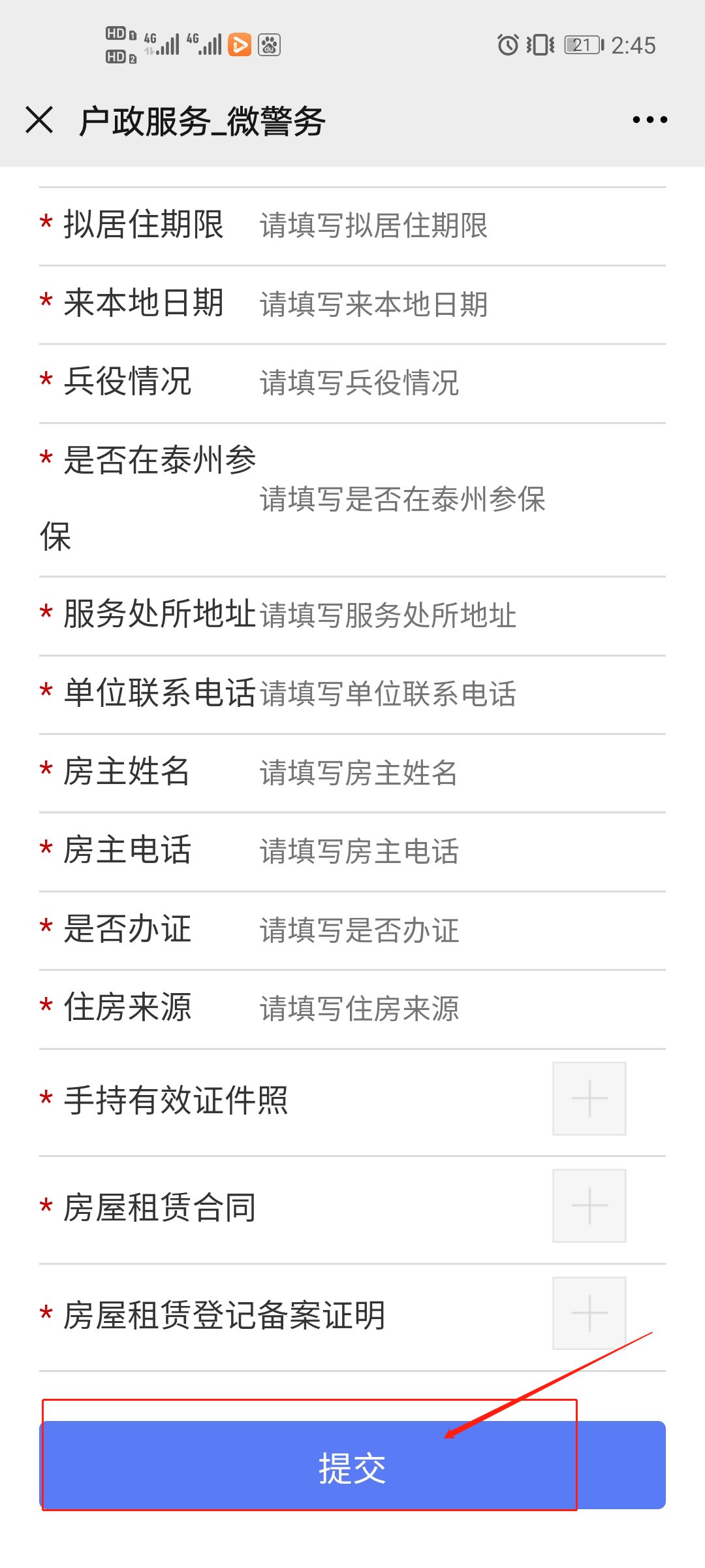 填写个人信息,并根据本人实际情况,上传提交相应的居住证明,点击提交即可完成网上申办。