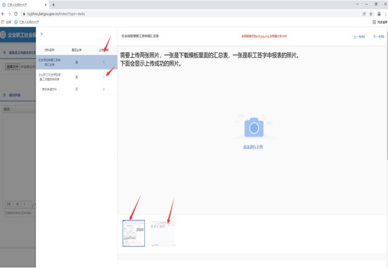 五、开始上传,左上角选择文件处,选择填写好的电子模板(一定要使用填写好的原表),右边材料列表上传刚刚拍好的两张照片,最后点确认提交。
