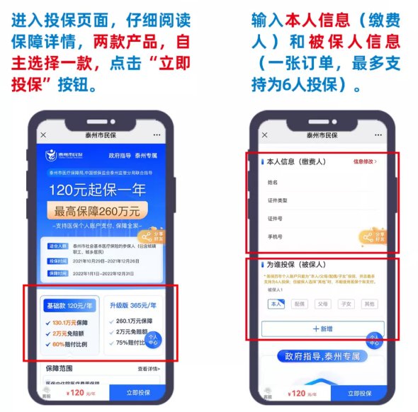 微信搜索并关注“泰州市民保”,直接在菜单栏点击“参保入口”即可进入投保页面。