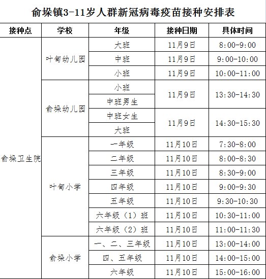 11月9日启动 3-11岁学生第一剂接种(具体安排见安排表),12月底完成全程接种。