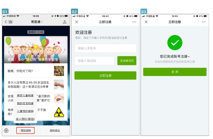 初次使用公众号,需要先完成注册,微信界面——预防接种,任一菜单都提示如图注册即可。