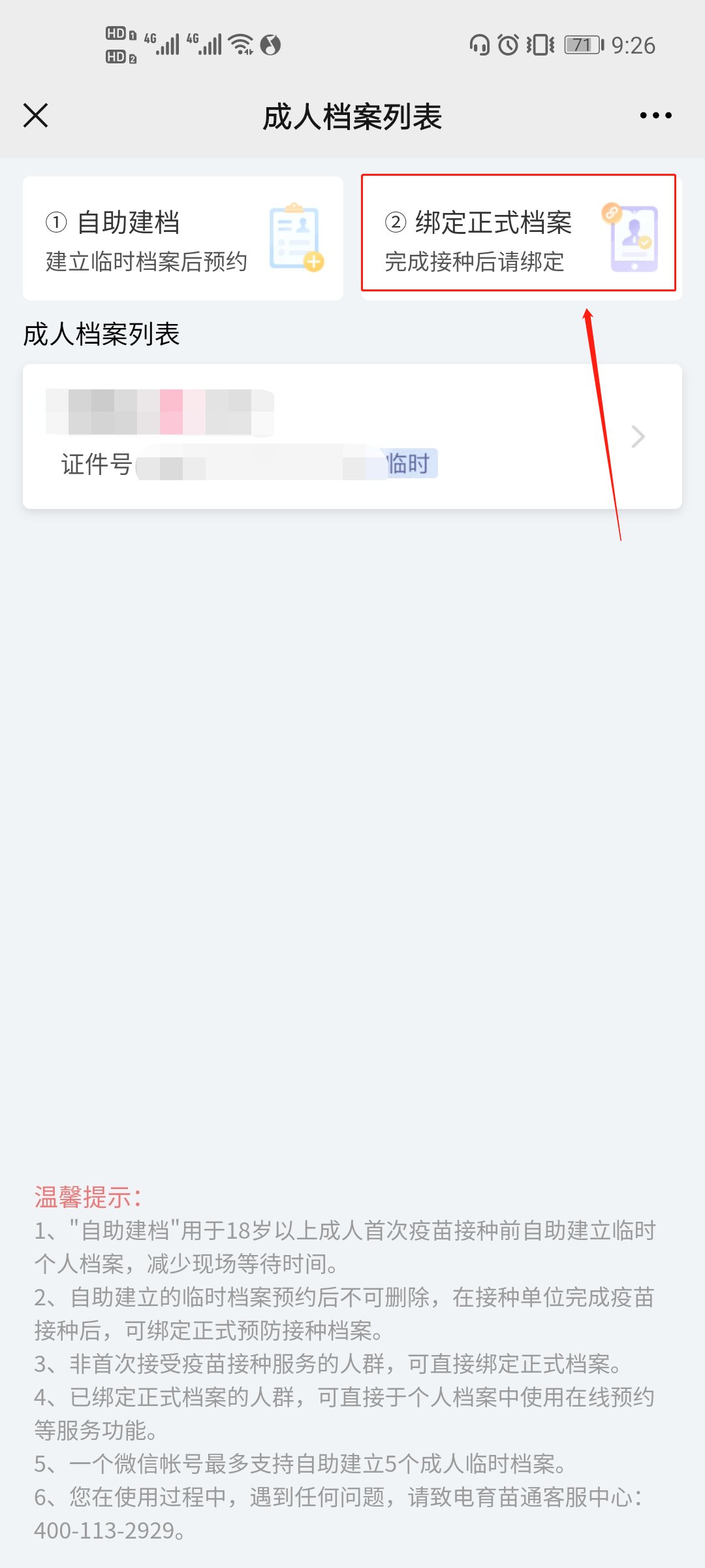第三步:如果已经在门诊单位建档,可直接选择“2绑定正式档案”就可以