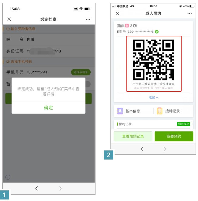 初次使用公众号,需要先完成注册,微信界面——预防接种,任一菜单都提示如图注册即可。