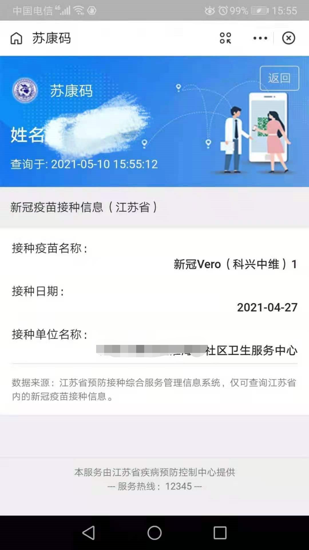 可以查询到的接种记录包括:接种品牌,接种日期以及接种单位。如下图所示: