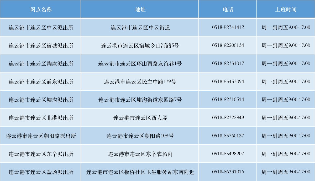 连云港连云区各地派出所详情一览